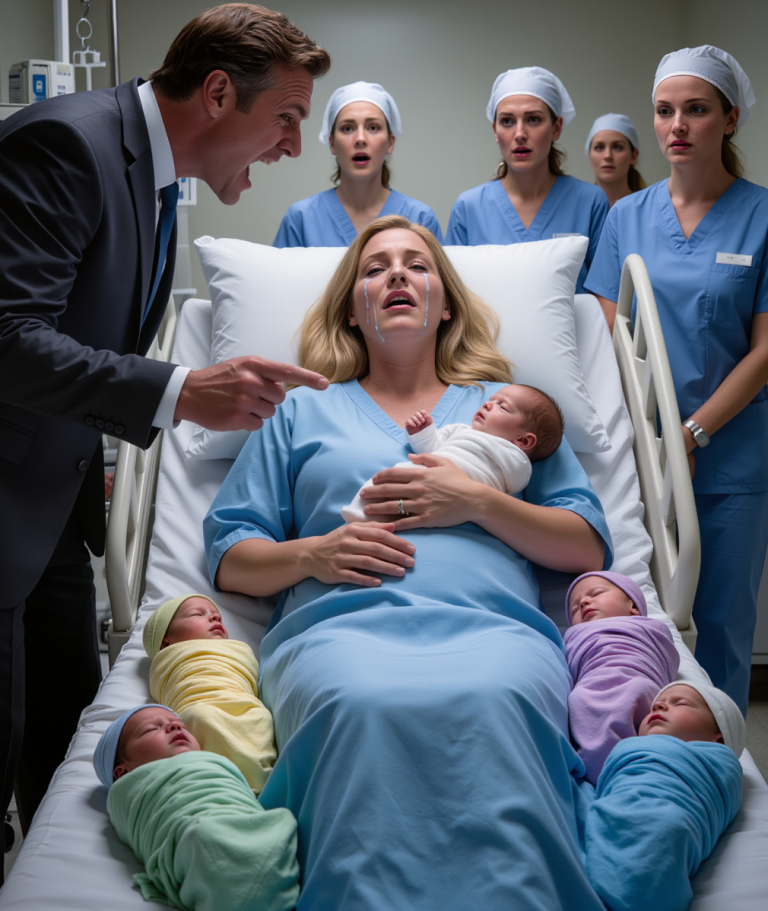 Anna lay exhausted, trembling from hours of labor, her skin damp with sweat. In her arms rested five tiny newborns, each wrapped in soft pastel blankets. Triplets would have astonished the hospital staff, but quintuplets? That was beyond rare. It should have been a miracle. Yet no one in the room looked at them in amazement.